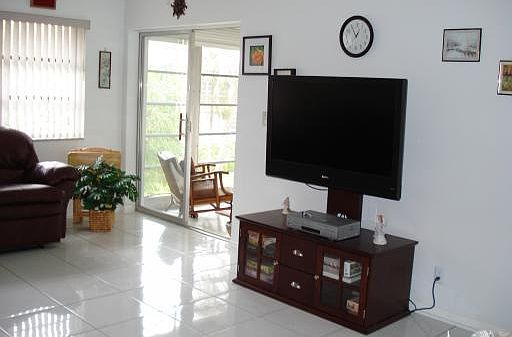 Fantastic, CLEAN condo in highly desirable Boca Verde. Enjoy condo living, yet with only one neighbor in this corner unit - - - only steps away from the elevator AND laundry room! 1 Bedroom with 1 AND A HALF baths so guests need not enter your private m aster bedroom when visiting! Also, enjoy your spacious Florida room overlooking a beautiful, lush garden area. Kitchen boasts a pass-thru to separate dining area off of large family room which has plenty of room for visiting family and friends.