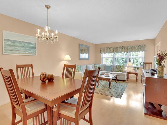 Welcome to this delightful 55+ community in East Boca! This charming one bedroom, one and a half bath unit with garden views offers both comfort and convenience with features like hurricane impact windows, plantation shutters, pergo engineered hardwood flooring, an enclosed Florida room and furniture that's included. It is the perfect space for anyone seeking low-maintenance living. Relax and enjoy the community's pool, shuffleboard, and clubhouse. Take a short drive to the Spanish River Beach or explore nearby attractions such as Mizner Park, Lake Wyman Park and tons of restaurants. With just under 800 sq ft of living space, this corner unit offers easy living and is perfect for retirees and second homeowners. Come discover the joy of living in the wonderful community of Boca Verde East.