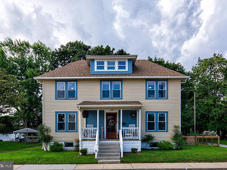 Nestled in a harmonious blend of history and modernity, this home boasts both original charm and contemporary updates. As you enter, you're greeted by the home's original front door, adorned with exquisite glass panes. The kitchen has been transformed with granite countertops, under-cabinet illumination, luxury vinyl plank flooring, and a classic farmhouse sink. Function meets style with slow-closing cabinets and drawers, complemented by a cozy breakfast bar. For a touch of antiquity, an original pantry graces the space with its pane glass door. The rich, original pine floors traverse the entire home, having been meticulously restored to their former splendor. Original French doors lead you to the inviting living room, a testament to the home's enduring grace. Thoughtfully designed, a concealed washer and dryer are located beneath the staircase, ensuring convenient yet unobtrusive access. Adjacent to the kitchen, the side porch serves as a tranquil three-season room. Further enhancing the home's allure, a kitchen window provides the perfect serving access for outdoor entertainment. Stepping outside, a spacious 8x15 deck beckons for alfresco dining or serene evening relaxation. Descend to the expansive basement, an ideal haven for storage. Within the residence, each bedroom stands out with generous proportions—no cramping your style in this dwelling. And for those balmy Delaware summers? Dual cooling units promise a comfortable and refreshing respite. No detail has been overlooked in this home's rejuvenation. From new windows to revamped electricals, modern plumbing, heating, air conditioning, and two meticulously designed bathrooms – every facet has been enhanced. Don't let this gem slip through your fingers.