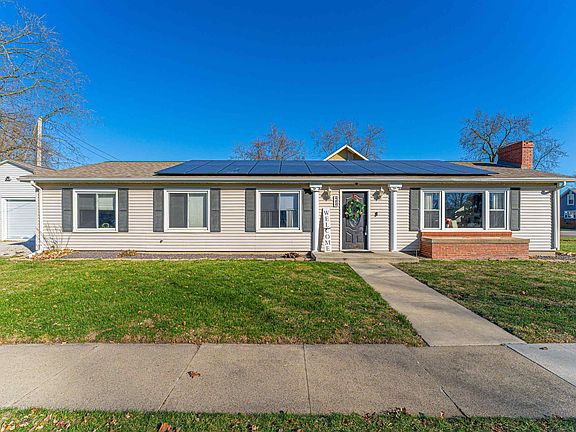 This 4 bedroom, 2 full bath vinyl sided ranch style gem of a home is situated right in the heart of Atlanta conveniently tucked between Lincoln and Bloomington with handy interstate access and all of the small town amenities and charm! The modern and trendy interior boasts a large front facing living room with laminate flooring, ample natural light, and a beautiful recently added center electric fireplace with adjacent built-ins, an equipped eat-in kitchen with a center island, breakfast bar, and adjacent laundry facilities, gracious 13X15 dining room with ample space to accommodate a large table and chairs, full hall bath, and four comfortably sized bedrooms. The primary suite boasts a full private adjacent tiled bath with a corner shower in addition to a whirlpool tub. Property also features vinyl replacement windows, architectural roof, newer central air conditioning unit, off-street parking, and a large storage shed with electricity as well as overhead loft storage. Front facing solar panels were recently installed also to provide the utmost in efficiency (2023) and run roughly $186.00/month (Helio). A choice small town place to call home in Logan County!