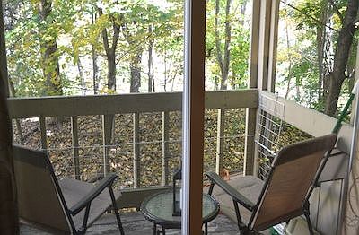 Do not miss the opportunity to own this pristine second level unit in the Village at Spring Green. This meticulously maintained condo is priced to sell & is absolutely in move-in condition. The 902 square foot unit features an updated granite & maple kitchen than opens into a separate dining area & hardwood living room with slider accessing a private deck overlooking the wooded backyard. A hardwood hallway leads you into a tile floor bath & two good sized carpeted bedrooms. The larger of the two bedrooms features its own in-unit laundry area, affording you the opportunity to do laundry within the comforts of home. A wall unit A/C keeps the condo well cooled in warmer weather and the individually controlled gas heat works very efficiently to keep you comfortably warm. Condo fees include town water, heat, and hot water in addition to the master insurance policy & upkeep of common areas, exterior of the buildings, landscaping, & snow removal. Pets up to 25 lbs are welcome here! Each unit has one assigned parking space & ample guest parking is available whenever needed. 2018 taxes reflect homestead, and tax assessment shown is for 2019.