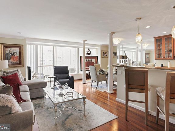 Open House for 4/24/22 has been cancelled. Welcome to the Edgewater Condominium, located in the Nation's Capitol popular evolving South West waterfront community. This condo has charm, water view and top floor living. Enjoy touring this large open floor plan condo. Enter the inviting foyer with a large closet and curio nook that flows into the open floor plan living/dining room and kitchen. The kitchen is well appointed with updated granite counter tops, breakfast bar, stainless steel appliances, recess lighting and lots of space to cook your favorite meal. The living area is drenched with sunlight that flow from the full length patio door that leads onto a huge balcony with a water view. This condo has hardwood floors throughout, 2 large bedrooms w/ large floor to ceiling windows, 2 full bathrooms w/updated cabinetry, granite countertops and tile floors. The unit conveys with an assigned indoor garage parking space, a large storage unit located in the basement storage room. There is a separate bike room for owners' bikes. The buildings laundry room and community rooms were recently updated. There is a Guest parking lot on the property with spots available on a first-come, first-serve basis. The building's common areas are all being renovated with fresh paint, new carpet, lighting fixtures, and decor, as well with a security system featuring security cameras, keyless fob entry. A new state of the art fire alarm system is being installed with audible boxes located in each condo unit. The Edgewater condos are conveniently located on a short street with a cul-de-sac and walkways leading to the rivers edge. The outdoor space is designed to invite you to walk, run, bike, or dock your boat along the waterfront of the Potomac river. This is a prime location between the Navy Yard and the Warf. Your condo is within walking distance to the Waterfront Metro stop (green)line, shopping, restaurants and much more!!!