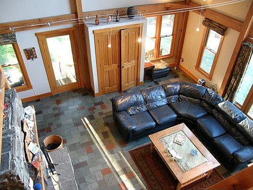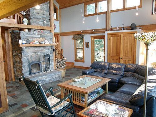 Location offers privacy and convenience - close to skiing and the Village of Stowe. This three bedroom home features a post & beam design, living room with a large stone fireplace, cathedral ceilings, floor to ceiling windows, hardwood floors and dramatic views of Mt. Mansfield. Lovely 5.5+ acre setting. A separate heated 600+/- square foot workshop also conveys.
