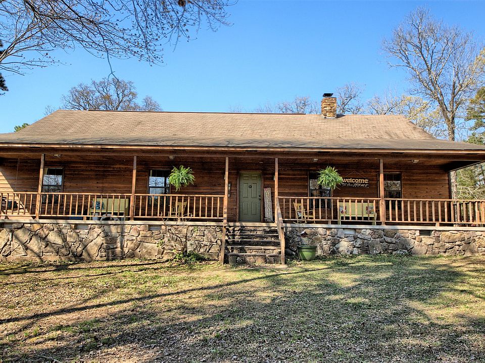 Peace and serenity. That is what you will find here in this 3+ BDR, 2.5 BA home built to last with custom cabin features including beautiful vaulted ceiling w/ custom built giant fireplace, pine accented walls & ceilings. Open kitchen dining w/ custom fridge/freezer. Oversized Bedrooms. Master suite w/ a W/P tub & large walk in closet. Loft style upstairs complete with recreation area, tons of space, and a possible 4th bdr, playroom, man cave, or lady loft. Oversized garage w/ plenty of room to work or move around in. Sitting on 15 acres of beautiful natural Arkansas landscape, with a distant view of mountains from the giant front porch extending across the house. No neighbors in sight, no highway road noise, just tranquility. Less than 10 minutes from dining, shopping, and more.