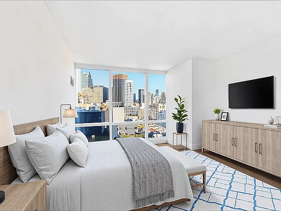 Welcome to Residence 23D, a stunning 1-bedroom, 1-bath home offering 732 square feet of refined living space in one of NoMad’s most architecturally celebrated condominiums. Designed by Pritzker Prize–winning architect Christian de Portzamparc, this residence pairs sleek contemporary style with the serenity of high-floor living. From the moment you enter, you’ll appreciate the thoughtful architecture: soaring ceiling heights, expansive wall-to-wall floor-to-ceiling windows that flood the space with natural light, and dramatic city-scape views that stretch across Manhattan’s iconic skyline. The open-plan living and dining area offers a gracious setting for both everyday living and elevated hosting.