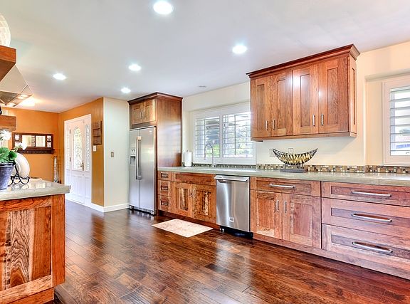 Located in a prestigious area of Fullerton! The minute you drive up you will be greeted by a desirable single level home on a corner lot that is beautifully landscaped. Walk through the front door and you will be impressed by tastefully chosen upgrades starting with the Brazilian walnut hardwood floors. The kitchen has custom mission style cabinetry, farm house sink, top of the line stainless steel appliances, custom light fixtures & concrete polished counter tops. This open concept "Great Room" has natural light seeping into the room, custom lighting, custom bar, stone fireplace which opens up into paradise. Once you walk out to the back yard you will feel like you're on vacation. You will see green lush landscaping, private pool & spa with a pebble tech finish, custom stone paver decking, and a large grassy area. This is an "Entertainers Delight". Enter back into the house and check out the 4 bedrooms, dual pane windows, plantation shutters, smooth ceilings, textured walls, new doors, 3 remodeled bathrooms featuring; stone tile shower, custom vanities, custom lighting, claw foot bathtub and shower. You are also conveniently located to stores, parks and schools. "To appreciate it you have to see it"
