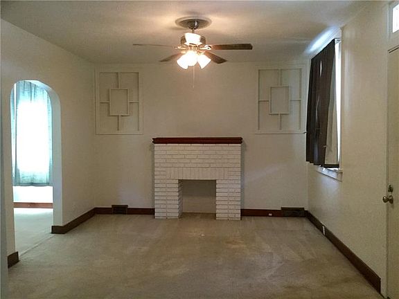 Make this home yours for the holidays. Spacious brick home with a lovely front porch for relaxing on is move in ready. Situated on a double lot. Complete newly remodeled bathroom with a stand up shower, toilet and vanity sink. Lots of cabinets in your kitchen with 2 portable cabinets for added storage. Updated electric service. Home has been completely repointed. Off street parking. Covered back patio walks out to your back yard for outdoor fun. Cedar closet in master bedroom. Basement could be finished.