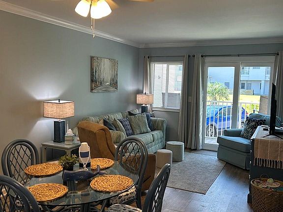 Crazy about the beach? The condo is within walking distance to the white sandy beaches of Gulf of America/Mexico. Beautifully decorated. All new pex plumbing, decorative paint throughout with crown molding, new doors, new hinges & knobs, new LVP flooring, new lighting throughout. The kitchen has new stainless steel sink, faucet, stainless steel appliances, stainless steel backsplash at stove, granite countertop with tile backsplash. Bonus Island with extra large drawers, storage shelves and 2 stools. Coffee bar with sink, new faucet, shiplap accent and a new Keurig coffee maker. New flooring throughout, decorative paint and beautifully updated bathrooms with new tile. Complete rehab of master bathroom with shiplap accent wall, updated vanity, toilet, tile floor and walk in shower. King size platform bed in master & new mattress purchased in 2023. 2nd bedroom with queen size mattress on the bottom, full size on top bunk bed, new mattress purchased in 2023. Complete rehab of 2nd bathroom with shiplap accent wall, updated vanity, tile floor, toilet, tub /shower and surround. Furniture stays with several custom pieces included. Full sleeper sofa. 3 Smart TV's. Dishes, decorations and bedding included. Storage in the condo for all of your beach items. New hurricane rated sliding glass door and windows. Parking close to condo. 17 minute drive to the Mobile Bay Ferry and Fort Morgan, a National Historic landmark. Fort Morgan Marina, 10 minute drive. Pines Park Public Boat Launch, 10 minute drive. Restaraunts close by include: Sassy's across from t e condo and Jesse's on the Bay, 7 minute drive. Dollar General, 5 minute drive. Pools, tennis courts, hot tub and sauna.