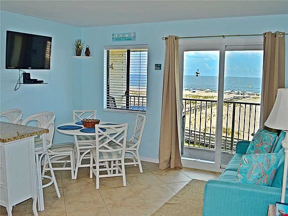 Awesome GULF FRONT unit!! 1BR/1BA unit with amazing views of the gulf!! The kitchen has granite counter tops, new dishware, custom cabinets and a portable island!! There is a large pantry with lots of storage space!! It has tile flooring, a new sofa, and new queen mattresses in both the sofa and the bedroom!! And, it is GULF FRONT!! It is close to an outdoor pool and acres of white sand beach!! It has access to an indoor pool, tennis courts, hot tubs, basketball courts, horseshoe pits, shuffleboard, and is located next to award winning Kiva Dunes Golf Course!! HOA fees include cable TV, water, sewer and internet!! And there is NO SEPARATE INSURANCE ASSESSMENT!! And, don't forget, it is a GULF FRONT UNIT WITH AN AMAZING VIEW!!