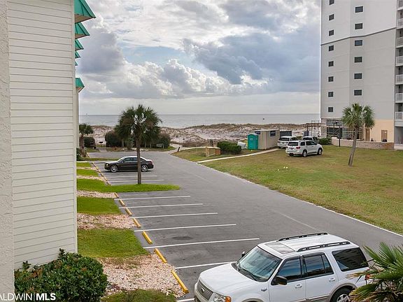 Gated family resort offers this fantastic 2br/2ba tastefully furnished Gulf front condo that sets on the white sandy beaches of Gulf Shores AL with the living room, balcony and master bedroom having views of the Gulf of Mexico and the nicest Sunrises and Sunsets on the Gulf. Only steps from your door to the White Sandy Beaches and just a short walk to the world class golf course at Kiva Dunes. Tile flooring throughout, upgraded cabinets, stack able W/D, flat screen TV's in each room with fresh paint, floor trim, crown molding, new frig 2019, A/C 2009. Amenities include: 6 outdoor and 1 indoor pool, fitness center, hot tubs, saunas, game room, tennis and horse shoes. Great rental income potential or a perfect 2nd home. Annual Ins. assessment $1,332 No pets.