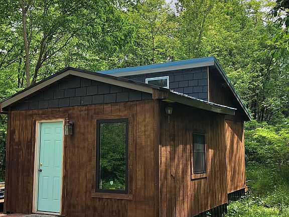 1BR / 1Ba 380ft2 furnished cottage/cabin w/d in unit off-street parking Cabin / tiny house located on wooded city lot at edge of town in Huntsville. House is a 1 bedroom, 1 bath with a separated kitchen/living room and a loft area total 380 sq ft. Lot size is .24 acre. Outside of house was recently re-sided and stained with new windows and soffit. Home is on city water and sewer. Most of the major work on the home is done but the inside needs insulation finished, wall coverings, and heating. Refrigerator, hot water heater, window AC and washer/dryer in place. Home has a ton of potential with lots of possibilities going forward. Lot could support another small home if someone wanted to build on the lot in the future. Willing to owner finance with down payment