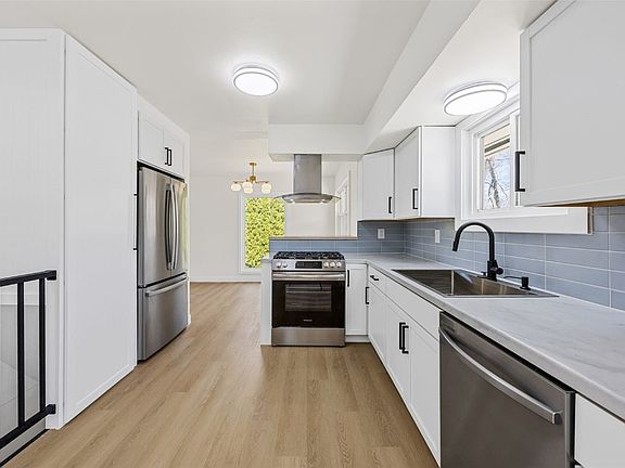 Welcome to your dream home in a prime location, beautifully remodeled from top to bottom. This stunning residence features 4 spacious bedrooms, 3 brand new bathrooms, and a fully finished basement offering plenty of room to spread out. The heart of the home is a gorgeous, modern kitchen complete with new appliances, a stylish tile backsplash, and a thoughtfully designed layout. Outside, the curb appeal shines with fresh exterior paint, sleek modern oak doors, and newly constructed retaining walls. Large windows fill the home with natural light, creating a warm and inviting atmosphere throughout. With its blend of contemporary updates and timeless charm, this home is perfect for any buyer ready to move right in. Landscape is AI generated to give buyer an idea of what it'll look like once grass is grown.