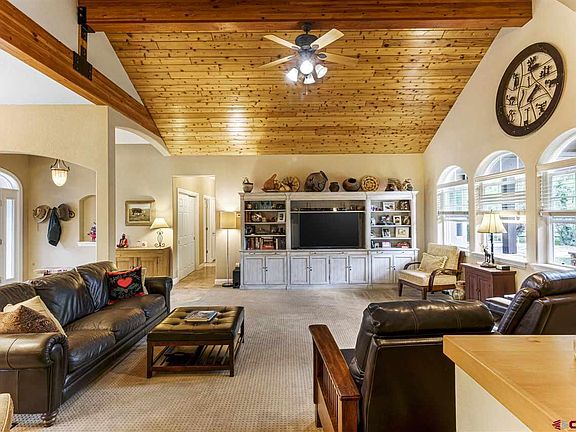 Fantastic opportunity to live in the highly coveted, million plus dollar, neighborhood of Red Rock Ranch. Red Rock Ranch is a quiet, secluded, mature neighborhood located in the heart of the stunning Animas Valley and is surrounded by grand views of mountains and red cliffs. 400 Red Rock Road is a meticulously maintained, well loved single level home. This properties charming curb appeal and lush landscape are very welcoming. The Timberline built home features a light, open, flowing floor plan with separated bedrooms. Standing in the foyer you are greeted by the great room's tall, vaulted, tongue and groove ceilings, fireplace and windows overlooking the rear yard. The large kitchen which is open to entertaining areas is excellent for chefs and family. It features solid wood cabinets with pull outs, rough edge granite on the island and counters, travertine floors, prep sink with disposal, 5 burner gas range and under counter lighting. The master bedroom is a true suite. It is light and airy with gorgeous hardwood floors, a stack rock fireplace, walk-out to the back patio with hot tub, and a spacious master bath with jetted tub, large stone shower and double sinks. There is a private retreat space/office that adjoins the bath to the master closet. 2 bedrooms are separated in the west wing and share a sweet full bath. Be sure to notice the built-ins and large closets in the bedrooms/office spaces. The crawl space has been finished with a wine cellar and additional storage. The home has sound system speakers that are located throughout the house, oversized garage and back patio. Enjoy the comfortable radiant in floor heat and whole house fan. Also, the Sellers recently installed an owned solar system that transfers with the sale. Electric generally runs only $22 a month! That brings me to one of the best parts of this home. The back yard is a true oasis. Enjoy your own private pond (new liner) and waterfalls with lighting enhancement, gas fire-pit, organic garden, and covered patio that's gas plumbed for your grill. There is also a fun in-ground trampoline. The yard is very lush and private. It is fully fenced and also comes with an invisible fence and collars for pets. The low HOA dues include irrigation. Enjoy the serene yet convenient location. Red Rock Ranch is adjacent to the semi-private Dalton Ranch Golf Course and restaurant, a scenic 20 mile drive to Purgatory ski resort and only 8 miles from downtown Durango.