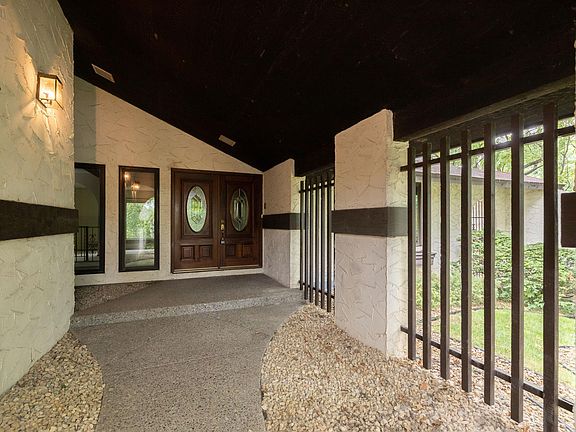 Beautiful one-owner custom-built mid-century modern home located across from Lake Alimagnet in a quiet cul-de-sac. Bring your vision to create instant equity. Enter through the peaceful courtyard. The large entry with original wood beams and arches welcome you into the spacious living room and adjacent dining room. Gorgeous views to the wooded backyard. The large kitchen features custom cabinets and an informal dining area. Two bedrooms and a full bath complete the main level. The wide spiral staircase takes you to the lower level. The extra large primary bedroom includes a sitting area, an en-suite full bathroom, and a walk-in closet. An additional bedroom, a 3/4 bath and a family room with a bar area walk-out to the patio. The laundry room completes the lower level. Enjoy the gorgeous paver patio in the backyard. Don't miss the parking pad at the back of the property accessible from the street behind the home as well as the storage shed. Irrigation system and Dual Heat/Air.