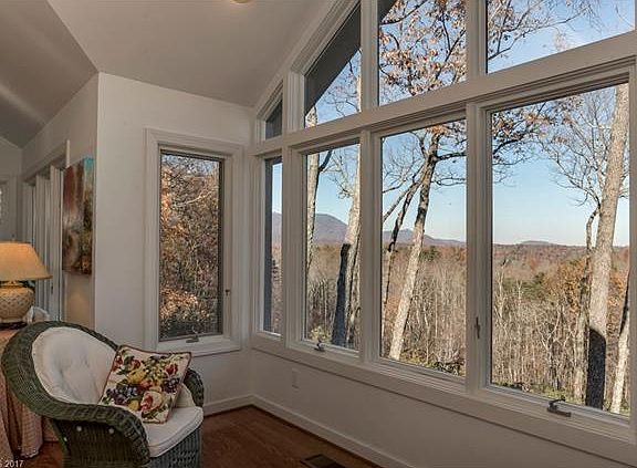 Year-round Mountainviews! Overlooking a laurel studded hillside, thru the treetops to the mountains, this house stands tall. If you want to be right in the middle of "Horse Country", passing by the prettiest farms possible, you found the right address. Hunting Country Road is known for its beauty. "Many Levels" is an upscale residential community only minutes from Tryon and right in the middle of pastures and rolling hills with stunning views of the mountains surrounding Tryon. The house is designed to be in harmony with the contours of the land and frame the mountain views, it seems to be at ease. Encompassing two levels, each connecting to the out-of-doors and natural landscape is lawn free, but features many flowering shrubs. There is a total living area of almost 3,000 sq.ft. with 4 bedrooms and 2,5 baths. The house straddles a double lot of 11 acres insuring total privacy. In the distance you see horse farms and there are many boarding facilities close by that are on FETA trails.