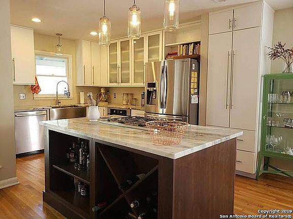 BEAUTIFUL RENOVATED 1-STORY/3 BEDROOM, 2 BATH HOME IN THE ALAMO HEIGHTS SCHOOL DISTRT. STAINLESS STEEL APPLIANCES, GAS STOVE TOP ON ISLAND FOR EASY SERVING/ENTERTAINMENT, OPEN LIVING DINING, & KITCHEN AREA, LOTS OF WINDOWS, SUNROOM OVRLOOKING BCKYRD, PRIVACY FENCE, QUARTZITE COUNTERS, CUSTOM CABINETRY, 2 CAR GARAGE, EASY ACCESS TO AUSTIN HWY, ORIG WOOD FLOORING THROUGHOUT & A WOOD BURNING FIREPLACE. LOCATED ON A LARGE CORNER LOT, BIG FRONT & BACKYARD, LARGE SLAB PATIO FOR TEX SIZE BBQS.