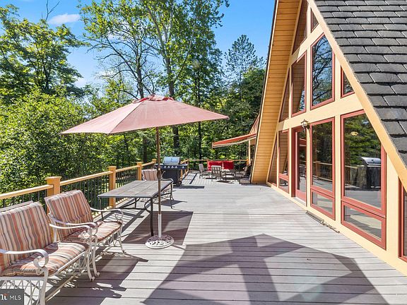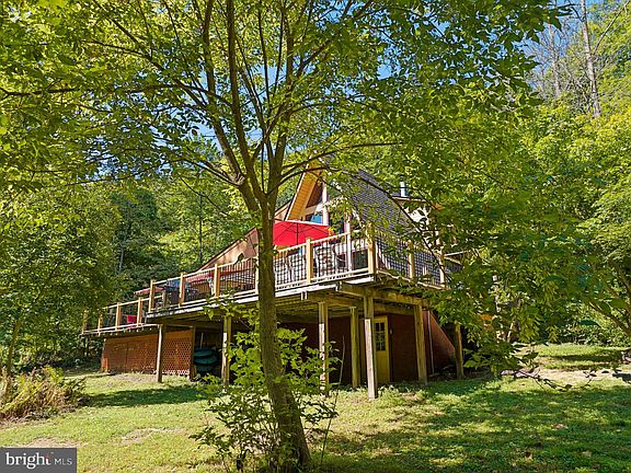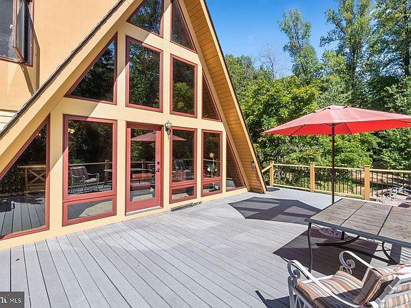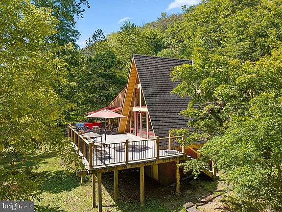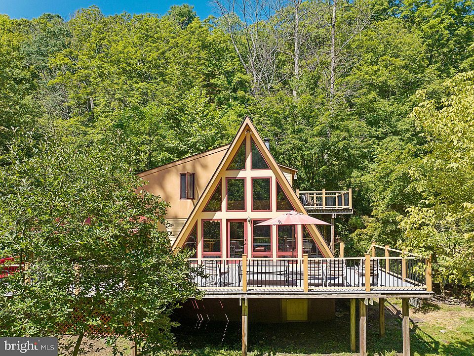 Experience the warmth and charm of Bucks County in a rural setting with frontage on the canal, an oasis of tranquility and privacy. This A- Frame home showcasing rustic charm is a perfect escape from the stresses of everyday living. Located in Tinicum township on almost 2 acres, the 3 bedroom, 2 bath home provides a most peaceful setting. The sun filled living room with wood floors, wood burning fireplace opens to an expansive deck. The family room is a combination family and dining area opening to a galley kitchen. The wood stove creates a warm and welcoming atmosphere. The main bedroom on the first floor has a fireplace and is surrounded on two sides by beautiful Brazilian walnut cabinetry, closets and a surprise Murphy Bed. The main bath has a shower, marble floors, corian counters and a place for a laundry. Another bedroom with bath is located on this level. A second floor bedroom features a sitting area and leads to a private balcony overlooking the grounds. The attic is great for storage or could be renovated for additional living. A new septic system installed August 2022 was built to accommodate a four bedroom home so there is room for expansion. If you are searching for peace and quiet and country charm come and enjoy this home and walk along the Towpath. It is minutes to the Delaware River, county parks for hiking, kayaking, tubing and leisurely walks. Close by is New Hope where you find fabulous dining, great shopping and antiquing and of course the arts and the Bucks County Playhouse. The home is one and a half hours from New York and one hour from Philadelphia.