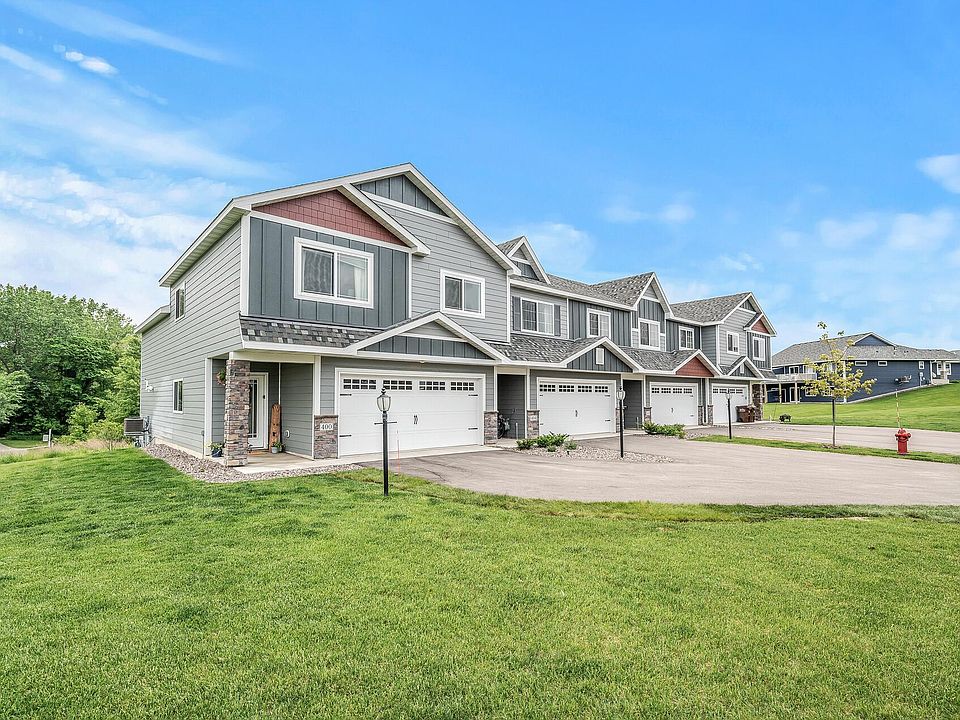 Must see 2020 end unit townhome with a walkout basement and many major updates! Updates include: All appliances to stainless high efficiency (including gas stove), fully finished basement, Trex composite deck, tankless water heater, water softener, luxurious master bathroom, EV charging capability, and much more! Prime location on a quiet cul-de-sac neighboring Riverpoint Park, Crow River, and Luceline State Trail. Enjoy all the benefits of new construction with the added advantage of top-of-the-line upgrades!