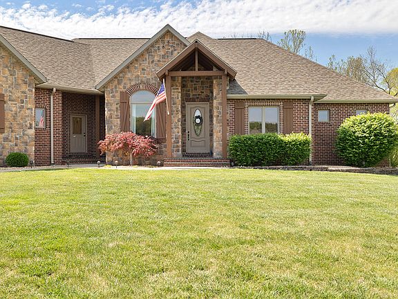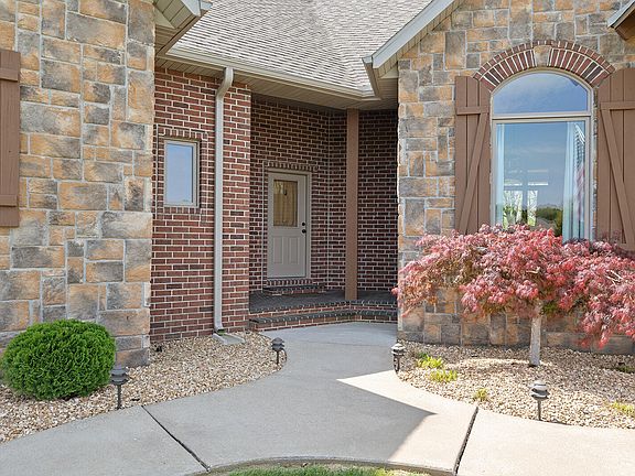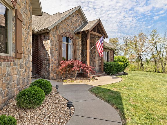 Welcome to luxury living in The Bluffs at Riverside--an exclusive gated community offering seclusion, privacy, and unparalleled access to the beauty of the Ozarks. Situated right on the picturesque Finley River, residents of The Bluffs enjoy exclusive access to this natural wonder.This immaculate 4 bed/3.5 bath all-brick and stone home epitomizes elegance and comfort. As you approach, a manicured yard, covered front porch, and a 3-car garage greet you, setting the tone for the grandeur within.Step inside to discover hardwood floors flowing seamlessly from the dining room to the formal living room and hallways. The eat-in kitchen is a culinary delight, featuring custom Alder cabinets, vaulted ceilings, newer stainless appliances, granite counters, and a charming bar area--perfect for entertaining guests. Adjacent is a cozy family room with a pellet stove, a powder room, and a laundry room with extra storage and a sink for added convenience.The primary bedroom suite offers a serene retreat with tray ceilings, exterior patio access, his and hers vanities, a jetted tub, and a luxurious tile walk-in shower. Two additional bedrooms share a Jack-and-Jill bathroom with separate vanities and a shower/tub combo.Upstairs, endless possibilities await--a third living area, in-law suite, or guest quarters with a private entrance and bathroom. Outside, a covered back patio leads to a composite deck and additional patio area, overlooking the breathtaking beauty and tranquility of the Ozarks. .Experience luxury living at its finest with exclusive amenities including fiber optic internet, trash service, gate maintenance, and road upkeep--all included in the HOA. Enjoy the warm evening glow of recently completed exterior up lighting as well. Don't miss your chance to own this exquisite retreat in The Bluffs at Riverside. Schedule your showing today and embrace the epitome of Ozark living!