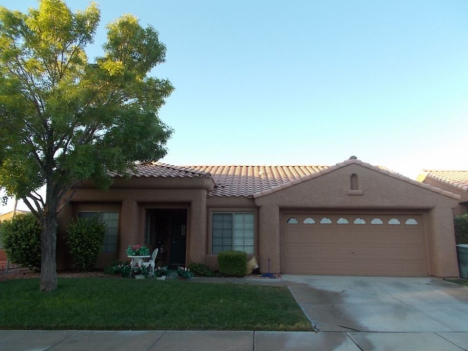 Owner/Agent, This Cute Copper Bluffs home is located on a quiet street in a great gated community. Home is in a Cul de sac Large Master bedroom with walk in closet. Second bedroom is spacious and a 3rd room can be used as a bedroom or den. Beautiful back yard from the vaulted living room area. The dining room area can be used for a formal dinning table if needed and also has a breakfast nook off the kitchen. Laundry room for extra storage. This home is located in a well kept low fee HOA. Mesquite is the place to be with no snow, but at the top of the beautiful mountains. A days drive to National parks and Las Vegas Nevada. A must see.