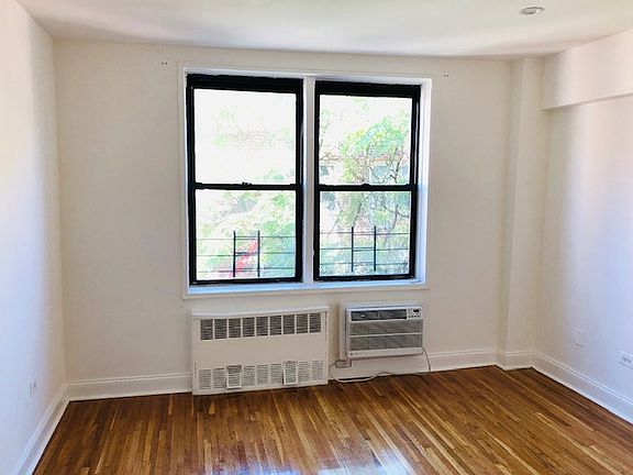 Bright Corner unit with windows abounding, this fantastic 2 Bedroom unit is available for immediate move-in! The recent renovations are still terrific! Semi open layout with partial Open Kitchen plan. Stainless appliances, dishwasher, microwave. Large Living Room with beautiful flooring. The master Bedroom is enormous enough to hold a King-size bed and king-size furniture (15x13). Smaller queen-size (11x11) converted bedroom or office, located on the opposite end of apartment offers privacy too. White tiled full Bath with tasteful fixtures and linen closet. 5 CLOSETS total you can hide everything!! Plus, built-in air-conditioners keep sun shining bright. Elevator building Laundry in building Super on-site Parking Garage Available too ($250 monthly) Just 2.5 blocks to Q train, express Manhattan Bus service around the corner! Pets okay that means large dogs too!