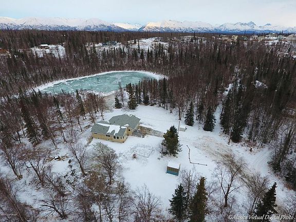 LOCATION LOCATION LOCATION! 2.34 Private unrestricted Acres w/ an idyllic pond and Mountain setting right off Hyer road. Min to Hospital, University, Palmer or Wasilla & perfect for commuters. Many newer items like roof, septic system, exterior metal siding etc... Lot has ample room to build a barn/shop, guest house, or business. Potential is endless. The lot is landscaped with many beautiful perennials. There is also a green house. The home comes with a back up generator and a secondary wood or coal heat source. The basement has a family room, craft room, office and full bath.