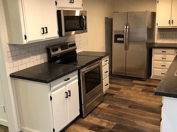 Another stunning 4 bedroom, 2 full bath rental home by Farmhouse Rentals Totally remodeled with designer touches everywhere! Features stunning kitchen with stainless steel appliances, subway tile backsplash, white cabinets and wood laminate flooring. 2 car detached garage and storm shelter! Hurry and schedule your showing now! This one won't last long!