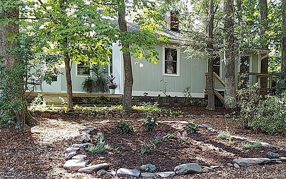 Highly desirable location! From this corner lot you can see and access beautiful Lake Tomahawk and all of it's amenities; public pool, tennis courts, walking trail, senior center, gazebo, playground, & northern mountain views. This charming 2 Bedroom 2 Bath home is a block from the lake and walking distance to downtown Black Mountain, and 5 minute drive to Montreat w/ hiking trails and creeks; a perfect location for year round use or perfect for a vacation rental! Second bedroom has sep. bath and entrance useful for house share or Air B and B. Home features: new siding & trim, new roof, newly enhanced attic insulation, sun tunnel skylight, all new appliances: refrigerator, gas stove, dishwasher, gas vented fireplace insert, and electric water heater, large storage shed, patio and garden stonework, front and back patios for relaxing and entertaining, and an ample lot to expand with lot and street corridor lake views.
