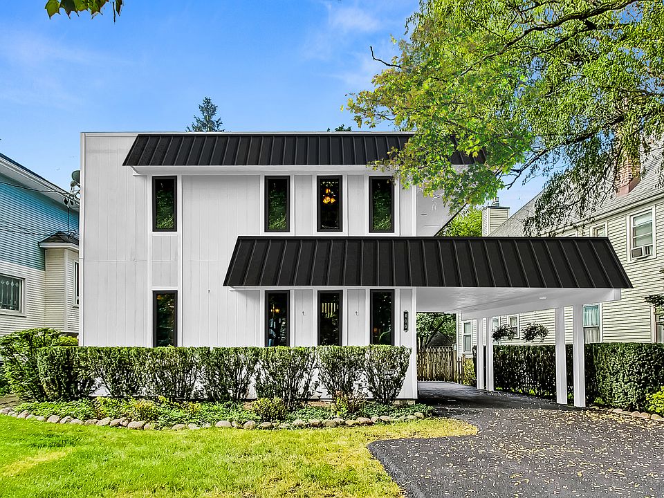 THE Location, UpTown! Mid Century meets Wooded Retreat. En Suite, huge family rm with frplc, first floor office, ALL big bedrooms and a full basement ready to be finished, side drive to 2.5 car detached garage. Carport doubles as great garden roof sundeck and covered parking, grocery drop.