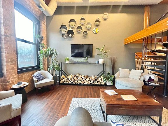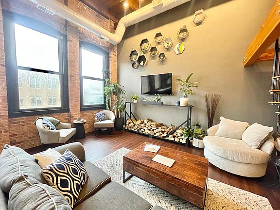 Live the PENTHOUSE WEST LOOP life in this uber lux RENOVATED LOFT. This penthouse true 2 story loft that is fully furnished! Incredible 20ft timber ceilings, exposed brick and hardwood floors throughout. Sun drenched with multiple skylights and extra-large windows. TONS of space throughout this 1250 sq ft condo with an open floor plan, ample living room, and large dining area. FIREPLACE! Solid wood spiral staircase leads to lofted Master bedroom complete with en suite and HUGE walk-in closet. Unit offers space for an in-home office. First floor has second FULL bathroom and in-unit laundry. Convenient, plentiful street parking. Heated GARAGE PARKING available for $250/mo. Steps from Blue Line & highway. Centrally located to all of the HOT TRENDY West Loop, Greek Town and Loop hot spots. PET FRIENDLY! Water & trash included. RENTED FURNISHED. Welcome home!