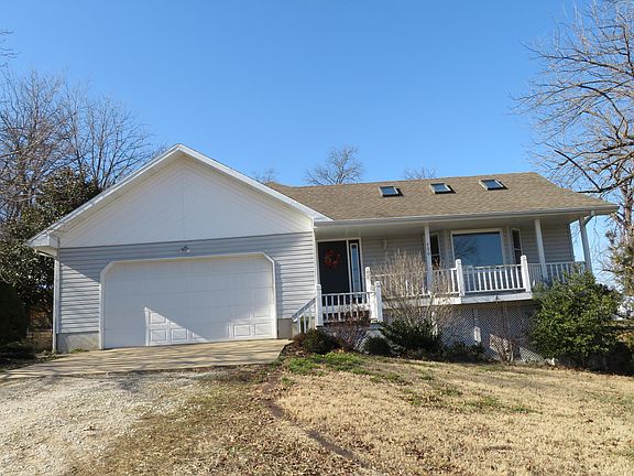A great find for small town living. This 3 bedroom 2 bath home is nestled in the hillside of two large lots with a fenced back yard, two car garage and a stone's throw to Stockton Lake. As you walk through the front door the open spaciousness of with tons of natural light cascading through the windows and skylights accentuate living, dining, kitchen combo. The vaulted ceiling adds to the atmosphere. There is ample of room for entertaining . the dishwasher is newer while the stove and refrigerator do work but, are older. The dinging area has room for a fairly large table and there is a breakfast bar looking into the kitchen area. the kitchen boasts a cooking island and a convenient pantry. A shaded deck area is accessible from the dining area and the Master bedroom. The master bedroom has a nice sized walk in closet and a regular closet. The master bath as well as the guest bath both have a shower/tub combo. Bedrooms are nice sized with recessed ceiling fans in each. There is a large room for the washer/dryer and access to yard from this room. The home has a newer hot water heater and electric heat unit. The home has a 2 car attached garage with a bolt in storm shelter inside. The exterior features 2 lots, a chained link fenced back yard, mature landscaping with plenty of shade and parking.
