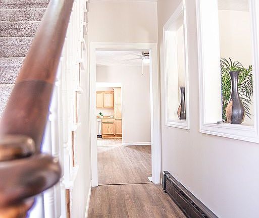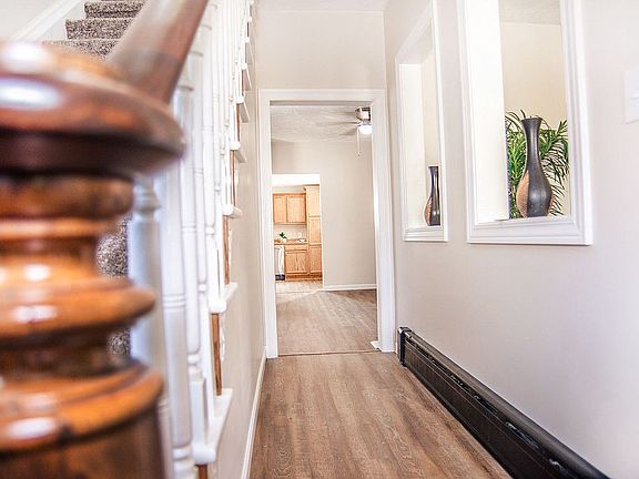 This 3 bedroom 1 1/2 bath has been completely remodeled. New wiring, breaker panel and boiler. Water heater has been replaced. New Luxury waterproof vinyl flooring throughout. This home features a 1st floor bedroom with adjacent office. Large kitchen with new cabinets and stainless steel appliances. Second floor has 2 spacious bedrooms with closets and large full bath. Basement includes older full bath with a finished rec room. Trex composite decking with vinyl railing on large multi level deck. Front porch features vinyl railing with dimmable lights for night time sitting.