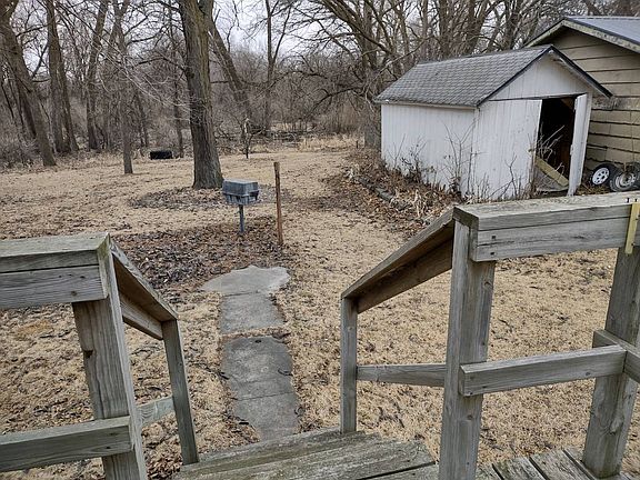 This property is within city limits but gives the acreage vibe at the end of the street surrounded by trees. The house is 1,380 sq feet with a partially unfinished basement and small garage. The main level includes the kitchen, living room and office. The upstairs has three bedrooms and one bathroom. The house has many features that maintains its antique charm with the trim, bookshelves and built-in storage. The property is agent owned.