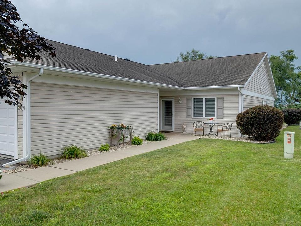 Enjoy tranquil creekside living in this beautifully maintained 2- bedroom 2-bath condo featuring a spacious master suite with an attached private bath. The inviting gas fireplace adds warmth to the open-concept living space, which flows seamlessly into a light-filled sunroom overlooking natures beauty. Step out onto the private patio-perfect for morning coffee or evening relaxation. This home also offers main floor laundry for added convenience and a large double car attached garage. A peaceful, move-in ready retreat with all the comforts of home. Let's Bring You Home!