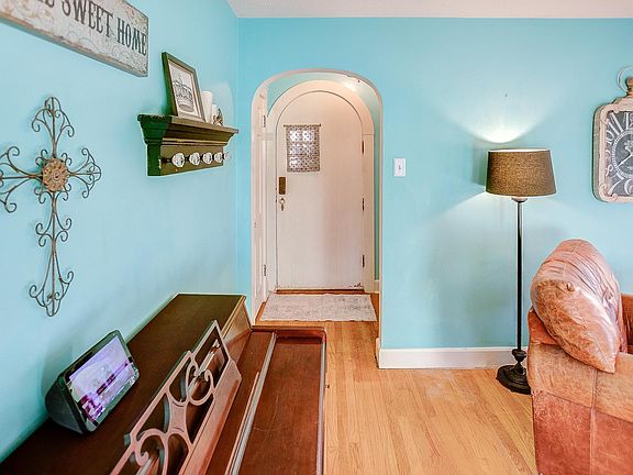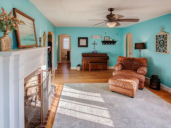 Picture perfect! This 2 bedroom, 2 bath all brick bungalow is loaded with charm! Foyer entry, arched doorways, built-in shelving in the living room and dining room, hardwood floors, decorative wood trim and wide baseboards! Living room has wood burning fireplace as well as the family room in the basement! Entertaining will be a breeze in the family room in partially finished basement including 2nd fireplace and large bar! Lots of unfinished area in basement is great for storage. Just imagine having morning coffee on your back screened porch overlooking the yard. Detached 2-car garage with opener and gravel driveway in rear. Original baseboards, fireplace mantels, hardwood (oak) floors, 6-panel doors & glass knobs. Large, privacy-fenced backyard. House has met city occupancy and is ready for a new owner. This is a great place to call "HOME"!