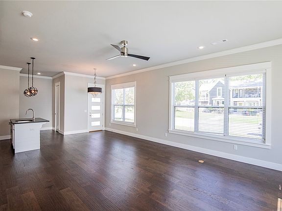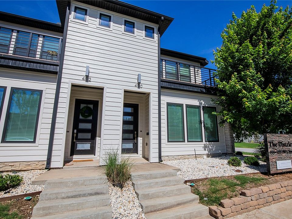 Exceptional Downtown Bentonville Townhome—Unbeatable Location! Located in the SW quadrant, this end-unit offers a premium location: steps from the Bentonville Square, restaurants, and the bike trail system. Enjoy a quick, easy bike ride to the new Walmart Home Office and steps to the new Walton STEM Institute. Designed for contemporary convenience, the main living area is open-concept and naturally bright. The kitchen is equipped with a suite of high-quality Thor appliances, including a gas range, and a full pantry. A dedicated mudroom, washer, and dryer are also included. Upstairs, the oversized primary suite includdes a private balcony. Storage is abundant throughout, from large bedroom closets to a storage area beneath the stairs. This unit includes a full two-car garage—a rare and valuable downtown amenity. Residents also have access to a common grilling area.