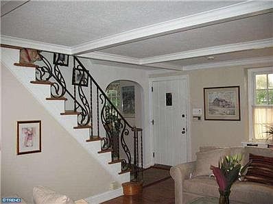 PRICE REDUCTION-This custom builder's home is in a tree-covered setting and only blocks from Cheltenham schools. The many elegant touches include wide-width hardwood floors, crown molding, deep window sills, beamed ceiling and custom lighting. Get cozy in the living room with the gas fireplace or slip out the Dutch door to the shaded porch. For the chef in the family the kitchen has a newer stainless steel 36"/5 burner gas cooktop and refrigerator, and there is a double oven and DW. Off the kitchen is the breakfast rm w/atrium window & a spacious family rm with recessed lighting, bow window & built-in bookcases. Additionally, there is a 1st flr powder rm, laundry rm, pantry and updated bathrms. The master bdrm has an en suite bathrm and 2 walk-in closets and the basement has a rec rm, w/new carpeting, a cedar closet, utility rm, workshop area, another powder rm & an additional storage closet. The front and rear yards have been professionally landscaped with a variety of plantings and in an eco-friendly manner