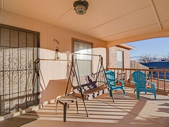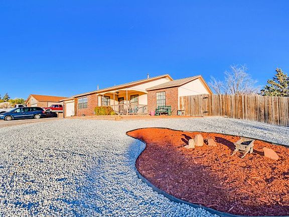 Hello views! This beautiful home in the heart of Rio Rancho has a great, functional layout. Three bedrooms, 1 and 3 4 baths, with newly tiled kitchen and bathrooms, and new carpet throughout. Newer roof from '19. Oversized 2 car garage with a bonus workshop including built in storage, workbench with a garage door to the backyard! The large storage shed (originally built to be an art studio) in the backyard is on a concrete foundation and connected to electricity! New stainless steel fridge and dishwasher included. Living room and Owner's suite boast absolutely stunning views of the Sandias! Backyard is a BBQ-ers dream with a large patio and roof deck with views! You will never miss Balloon Fiesta again, all you need to do is simply look out back and you will see the mass ascension!