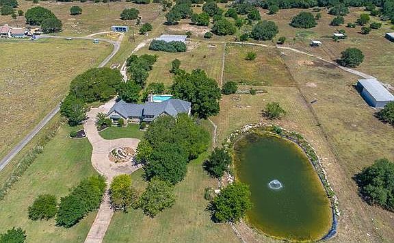 Stunning custom 4 bedroom home with 4 1/2 baths situated on 19.3146 acres--1/4 acre pond-private pool-riding arena w lights-horse barn with stalls-hay and equipment storage shed--water features--master suite down with impressive study-huge laundry room and 1/2 bath down for access to pool area- 2 spacious bedrooms share jack-n-jill bath & 1 larger bedroom has a private bath- game room up-great storage & built-ins-bonus room above garage w/ full bath-exterior painted 2017-minutes to I35 & 130-100% FENCED