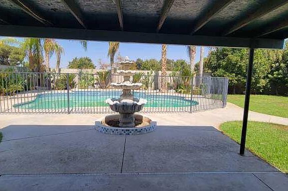 Take a look at this Beautiful Oasis! This 4 bedroom 3 bath home is Gorgeous! It's Beautifully landscaped exterior with Palm trees, fruit trees and greenery gives a relaxing feel to unwind to, escape the heat with with a dip in the pool. Perfect for Entertaining! Pool is gated so the kids or pups can enjoy the large backyard with no worries! Spacious interior for your family! Fourth bedroom is large with it's own bathroom and has it's own entrance from outside, it can be used as Pool room or studio or in-laws quarters. . This is the perfect home for you and your family in a great quiet neighborhood minutes away from shopping and entertainment. You don't want to miss out on this home! Come and make this home your own!