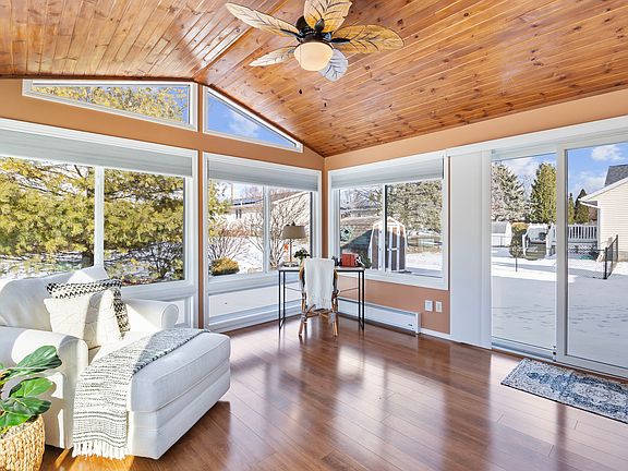 Conveniently located in Carriage Hills, this well-cared for, cozy two story sits on a corner lot with plenty of trees, a front porch, and an easy to maintain yard. The spacious main level has a fireplace, beautiful newer hardwood floors, an updated kitchen, and a well-designed open floor plan including a large sunroom with vaulted ceilings. The basement includes a finished family room with fireplace and enough space for kids to play as well as a laundry/storage area. With good sized bedrooms, plenty of closet space, and tall ceilings in the primary bedroom, the second floor tops off this lovely family home. Additional updates include HVAC system and water heater ensuring peace of mind for years to come.