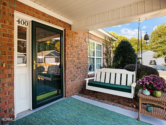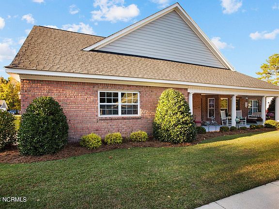 One of the prettiest homes in the community. This home is a end unit, with a very inviting front porch. The living space is very open, with cathedral ceilings and lots of natural lighting. Kitchen updated recently with new stainless steel appliances, new countertops, a breakfast bar, freshly painted cabinets and new tile backsplash laid in the herringbone pattern. The home features wood laminate flooring, and built in book cabinets in the living space. The primary suite is roomy, privately located, with the ensuite bathroom that includes a jetted walk in tub/shower, so the home is handicapped accessible. Two guest bedrooms with carpet flooring and ceiling fans share a full hall bathroom. The home is built on a slab and comes with a two car garage. Seller put a new roof in 2023. The community building is great for entertaining, outside of your home. The location allows for easy access to shopping, downtown area, and medical facilities.