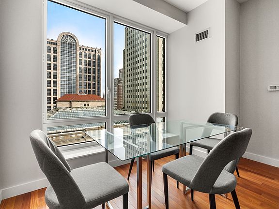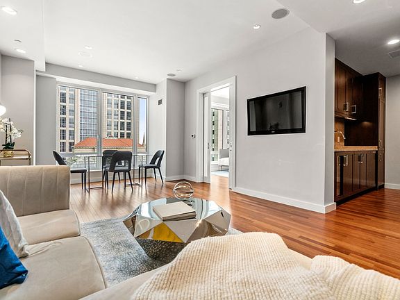 This gorgeous 2 bedroom, 2 bath residence offers a large entry foyer, a chef's kitchen with custom Italian Canaletto walnut cabinetry, all top-of-the-line appliances including a Sub-Zero refrigerator, Miele gas range and dishwasher. The living/dining area offers high ceilings and nice city views. The primary suite is large enough for a home office set-up, has a huge walk in closet and an en suite bathroom with double vanity, separate marble shower and a deep soaking tub. The second bedroom is off the living area also with good closet/storage space. The Clarendon is an award winning building designed by Robert A.M. Stern consisting of 33 stories of luxury living. It features 24 hour security/concierge, a fitness center, children's playroom and an owner's lounge with private landscaped terrace on the 6th floor. The building offers one of the best locations in town with an exceptional staff and steps to everything the city has to offer. The price includes one valet garage space.