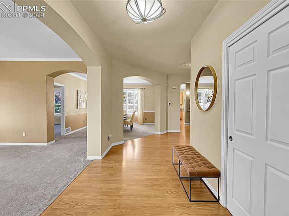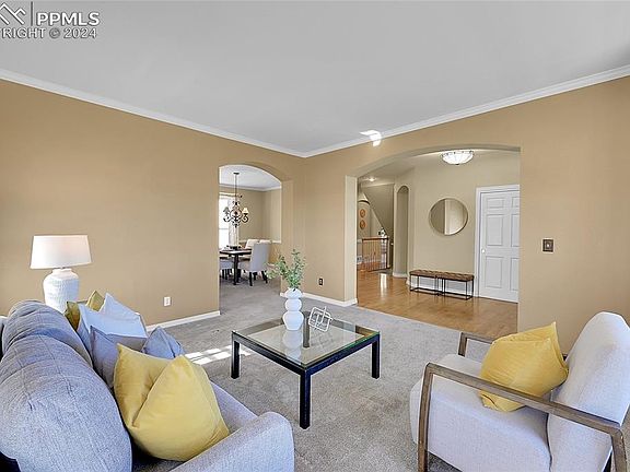 Welcome to this 5-bedroom, 5-bathroom home located in the coveted Hidden Pointe community. Majestically settled on a sizable corner lot, this exquisite 4,142 square-foot residence showcases a blend of elegance, functionality, and comfort. The entryway is charmingly inviting, seamlessly opening to essential areas of the home, making every arrival a delightful experience. The main floor features a perfectly positioned office, offering an ideal work-from-home space that nurtures productivity and creativity. Plantation shutters filter in the right amount of sunlight, adding a subtle charm to the setting. The elegance extends to the family room, which is warmed by a cozy gas fireplace, a perfect spot for gathering and relaxing. The kitchen boasts hardwood floors and equipped with modern appliances, offering a perfect canvas for gourmet cooking. The nearby dining area is spacious enough for a large dining table, perfect for hosting intimate dinners or holiday feasts. The main floor also offers a formal living room and ½ bath. Ascend the staircase to find the generously sized bedrooms. Discover an oversized primary bedroom - a private retreat in itself with ample space for a sitting area and a king-size bed. The 5-piece primary bathroom adds to the suite feeling with a soaking tub, a separate shower, dual vanity sinks, and a walk-in closet. Enjoy the added advantage of an ensuite bath to one of the bedrooms, offering privacy and comfort to your guests or family members. The convenience of having laundry capabilities upstairs means no carrying heavy baskets up and down the stairs. The newer carpeting throughout the home provides a warm, comfortable underfoot, while continuing the feel of sophistication. The home's exterior is equally captivating with a manicured lawn, promising countless cheerful gatherings or tranquil moments in solitude. In summary, this home is not just a dwelling but a lifestyle.