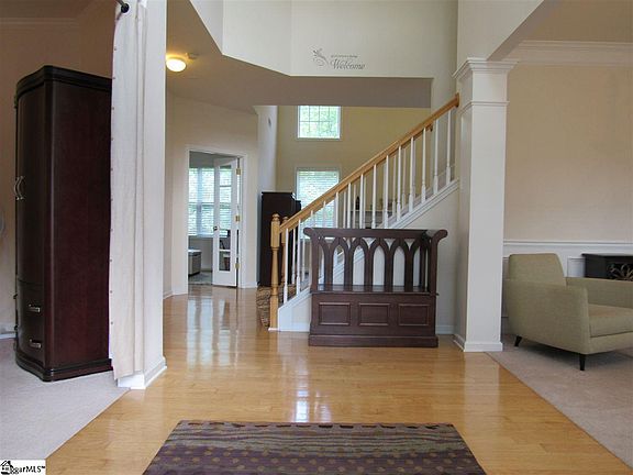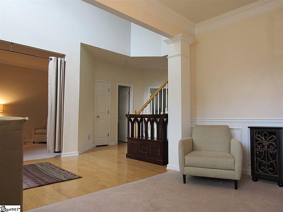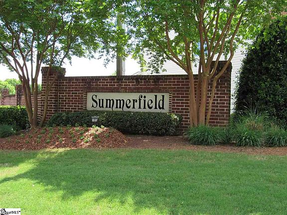 Located in one of Woodruff Road area's highly sought after communities. Gleaming hardwoods and an airy 2-story foyer welcome you into this charming home. You will notice the light-filled dining room to the right and the living room to the left. Off the foyer is a spacious half bath and french doors leading to a perfect home office space. The bright great room has a 2-story ceiling, including a gas fireplace and a wall of windows that overlook the backyard and patio. The open concept kitchen makes cooking and conversation a breeze. The kitchen boasts an island, light wood cabinetry, stainless steel appliances, tile backsplash and convenient pantry. A staircase off the foyer leads you upstairs to all four bedrooms. The huge master suite has plenty of room for seating and is complemented with a deep trey ceiling. The ensuite is sure to please with, double vanity sinks, a garden tub, enclosed shower, separate toilet room and walk-in closet. All of the additional bedrooms have hardwood floor and generous closets. These secondary bedrooms share a hallway bath equipped with a tub/shower combination and vanity sink. Just outside the bathroom is a linen closet. The laundry room is located on this floor for easy access from all the bedrooms. A walk-in attic gives you extra storage space for seasonal items. The double garage is super-convenient with its front entry, dual remote doors. The large, flat backyard offers plenty of opportunity for outdoor enjoyment. Summerfield offers a swimming pool, playground, sidewalks, street lights, and common areas.