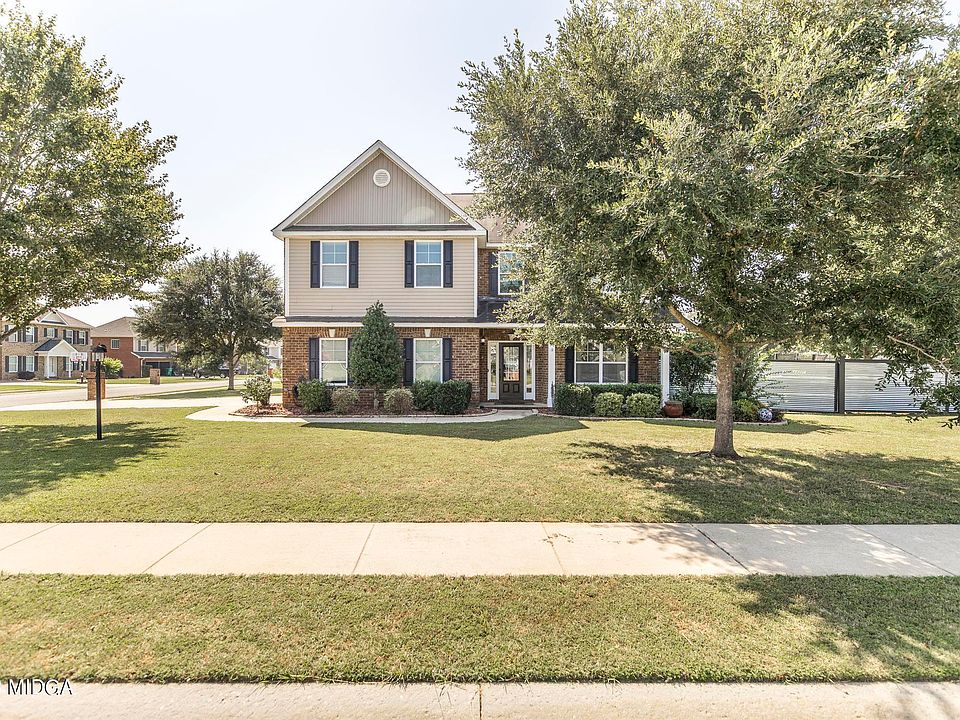 This stunning 5-bedroom, 3-full bath brick home sits on a large corner lot & features multiple upgrades that WILL NOT be found in new construction homes. Upgrades installed by the current seller consist of a rustic charm of shiplap that accents the entry way & creates a warm & inviting atmosphere. The multicolor tile was installed to blend with and accentuate the beautiful hardwood flooring. The downstairs bedroom has been converted to function as a game room or bedroom. It features built-in/enclosed drawers, refrigerator, multiple shelves with USB ports, a converted clothing/storage closet. A survival closet exists under the stairway and consists of a storage bench, USB ports, vacuum charger and more. A 2nd-floor landing was installed includes hardwood and iron railing. Bookshelves (one with an industrial look) were installed in 2 bedrooms & closets. The large master bedroom is a blank canvas with an elegant ensuite that features double sinks, California walk-in closet with large sliding mirror, built in jewelry area, plenty of shelving and more. Insulation and a state-of-the-art water