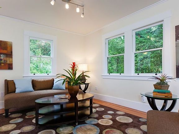 Charming private retreat with a view of the bay and level outdoor gardens. Bright and open floor plan with updates throughout. Easy access to the Village shopping , schools and transportation.