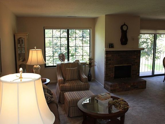 Updated second floor unit overlooking park and natural area. This is an end unit so it does not share a common wall with another unit. Fireplace in the living room that has been converted to gas. Updates in this home include kitchen flooring, appliances, counters, door hardware, carpeting throughout, painting, bathroom stools, flooring, vanity and lighting. The garage for this unit is #10 and is one of the closest garage stalls to this building. If a second stall is needed the association owns several and can be purchased through the association.