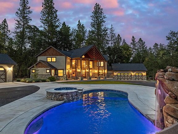 Tucked away in the heart of the World famous Applegate Wine Country, your Mini Estate awaits. Listed below tax assessed value for a quick sale. Have you ever dreamed of owning a home you never want to leave that offers the amenities of a 5-star resort? Well, look no further. This fully fenced and gated, almost 5 flat acre property has it all. Custom built 3239 sq ft home with 3 Primary Suites (one downstairs and 2 upstairs) that all have large walk-in closets and an office that could be used as a 4th Bedroom. Take in the incredible, ever changing views from every room. Great room with floor to ceiling rock fireplace and windows. Kitchen boasts a huge island, tons of storage and stainless appliances. Beautiful In-ground, heated saltwater pool with a waterfall, grotto, slide and a hot tub. 3 car attached Garage and an addition 3 car detached Shop, large Metal Carport for Boat/RV storage, Full RV Hook-ups, Batting cage, Dog Run, Garden, 2 Ponds and a season creek, Pasture and more.