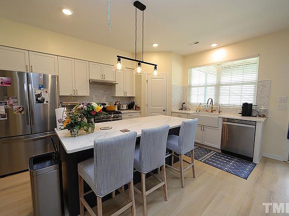 Welcome to your new home in the charming community of Austin Creek in Wake Forest! This beautiful 4-bed, 3-bath home is perfect for those looking for a comfortable and open living design. The interior offers bright and new luxury vinyl flooring and updated designer lighting. Beautiful white cabinets, quartz counters and tile backsplash with recently updated smart stainless steel appliances in the kitchen and a huge center island with lots of drawers for storage! Primary suite features a large walk-in closet with custom built-in shelving and spa like bathroom. Recently updated secondary and guest bathrooms with tile flooring and new vanities. House includes a spacious flex room on the 2nd floor and office with a new barn door on the main level. 2 car garage and a screened porch! The community offers amenities such as a clubhouse and swimming pool that provide entertainment and relaxation for all. Enjoy the playground and take in the picturesque views on the walking trails. 5 minutes from downtown Wake Forest and convenient to retail areas and supermarkets in Wake Forest.